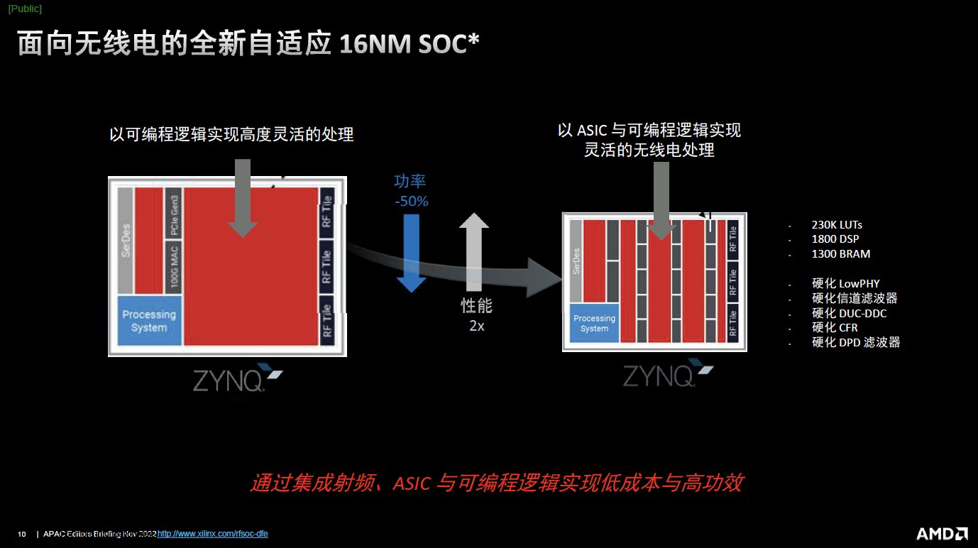 韓國(guó)是中國(guó)最早開(kāi)始部署5G的國(guó)家;中國(guó)后來(lái)居上,在2018年開(kāi)始處于領(lǐng)先地位;北美和中東歐非地區(qū)從2020年開(kāi)始進(jìn)行5G部署,目前仍在基礎(chǔ)網(wǎng)絡(luò)鋪設(shè)中;當(dāng)前東南亞像印度和越南等國(guó)家開(kāi)始將5G列入國(guó)家發(fā)展重點(diǎn),進(jìn)行大規(guī)模投資和基建布局。不同的國(guó)家地區(qū)的5G部署,有著不同的需求。像中國(guó)等市場(chǎng)更關(guān)注提高帶寬帶來(lái)的傳輸速率提升,而印度則是關(guān)注5G在垂直應(yīng)用方向上的賦能。這就給5G提出了非常不同的要求,它要求這些器件能夠?qū)崿F(xiàn)非常低的帶寬,非常低的功耗。同時(shí),這些網(wǎng)絡(luò)的時(shí)延要非常的低,又要非常的穩(wěn)定,并且能夠無(wú)處不在。但不論是大帶寬的需求,還是低功耗的需求,AMD和賽靈思技術(shù),包括無(wú)線電和其它的器件,都能夠幫助客戶(hù)的方案實(shí)現(xiàn)更高效設(shè)計(jì)。
