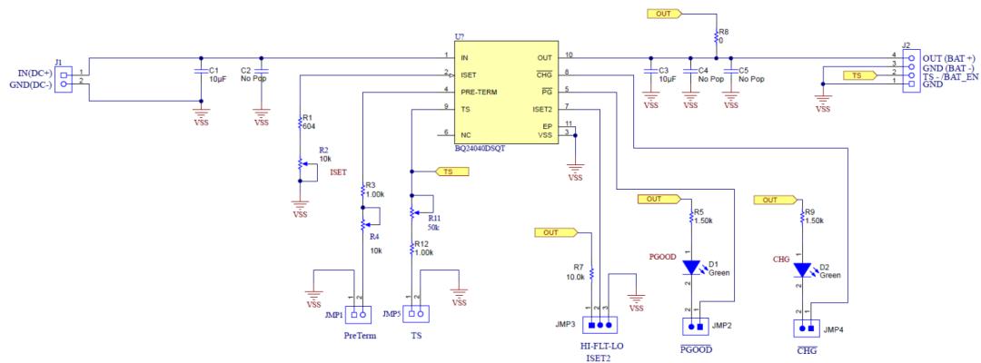 BQ24040屬于TI用的比較多的線性充電芯片了,最大1A的充電電流(一般500mA差不多了),典型應(yīng)用電路如下圖。