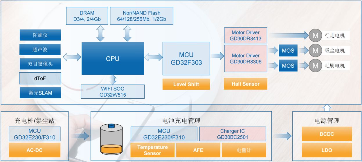 圖3:基于兆易創(chuàng)新廣泛產(chǎn)品組合的掃地機(jī)器人解決方案
