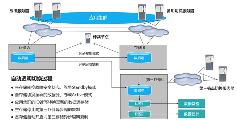 當(dāng)然,這還只是新華三集團(tuán)智慧醫(yī)院存儲(chǔ)解決方案給出答案的第一步,要想獲得真正滿(mǎn)足7*24*365全天候可靠性,大部分醫(yī)院往往會(huì)采用雙活或者兩地三中心的架構(gòu)設(shè)計(jì)。這也是三甲醫(yī)院ICT系統(tǒng)合規(guī)性的重要組成部分,在這類(lèi)災(zāi)備系統(tǒng)的構(gòu)建方面,新華三同樣擁有豐富經(jīng)驗(yàn)。