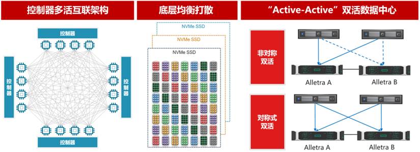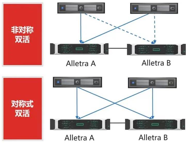 新華三Alletra/Primera同時(shí)支持非對(duì)稱(chēng)式、本地式和對(duì)稱(chēng)式不同的雙活模式,醫(yī)院用戶(hù)可根據(jù)運(yùn)營(yíng)狀況靈活選擇:在對(duì)稱(chēng)式雙活的情況下,雙活的節(jié)點(diǎn)A和節(jié)點(diǎn)B可同時(shí)讀寫(xiě)數(shù)據(jù),這樣系統(tǒng)有計(jì)劃性運(yùn)維和更新的需求時(shí),可實(shí)現(xiàn)主動(dòng)式切換,僅需要1秒切換時(shí)間;被動(dòng)式切換小于10秒,適用于非計(jì)劃停機(jī)/異常故障等。