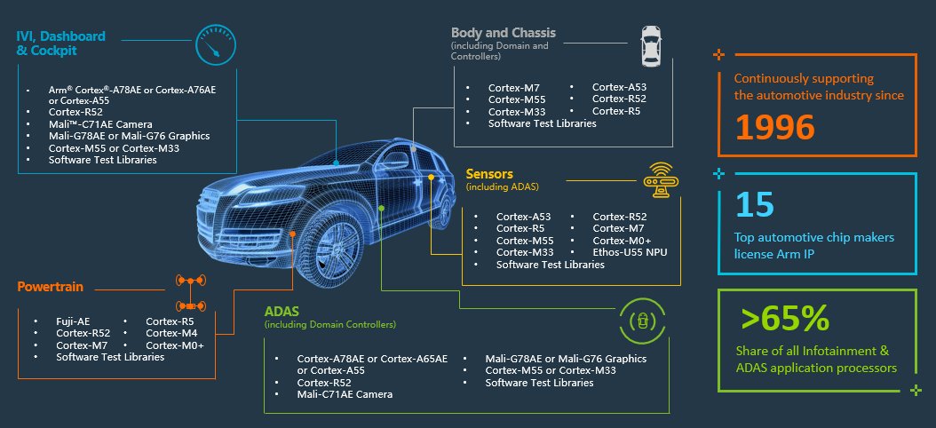 Arm IP廣泛應(yīng)用于汽車的各組成部分
