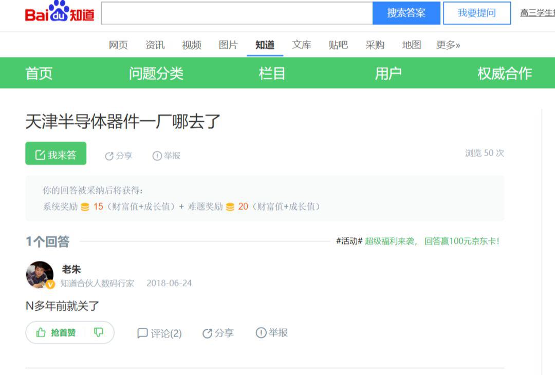 盡管葉迪生戰(zhàn)功赫赫,曾經(jīng)研發(fā)的半導(dǎo)體元件填補(bǔ)了國內(nèi)多項(xiàng)空白,但這15個廠的命運(yùn)卻非常不一樣。筆者也很難搜全他們的資料了。就比如一廠,網(wǎng)上也只剩下百度知道里一位網(wǎng)友的回復(fù),稱其幾年前就已經(jīng)關(guān)閉。筆者在此只能扒一扒那些現(xiàn)在還頗具規(guī)模的天津半導(dǎo)體老廠。