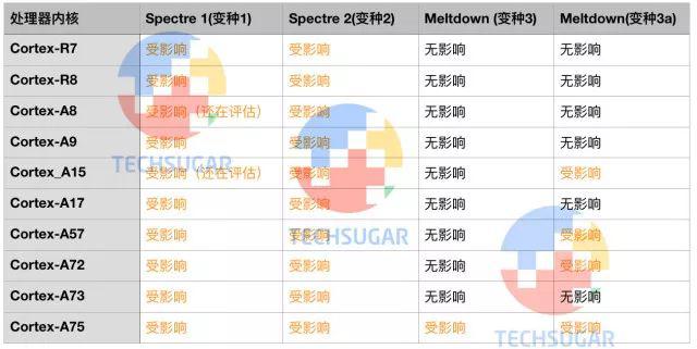 Arm公布目前受這兩種攻擊方式影響的內(nèi)核共十款,除了蘋果,高通、Nvidia、海思、聯(lián)發(fā)科、賽靈思與Altera等知名IC設(shè)計公司無一幸免,這些公司均有用受影響內(nèi)核設(shè)計的處理器,應用范圍不僅局限與手機與平板電腦等消費與通信市場,包括汽車、工業(yè)應用處理器存在被攻擊風險- -當然,恩智浦i.MX系列與瑞薩R-Car系列多數(shù)可能不會聯(lián)網(wǎng),所以風險不大。