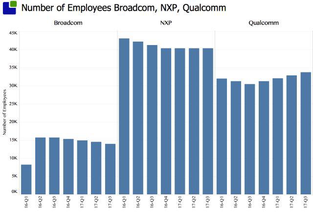 但如果收購(gòu)高通之后,原博通雇員將屬于少數(shù)派。高通現(xiàn)在約有3萬(wàn)3千人,恩智浦約有3萬(wàn)1千人(恩智浦有工廠(chǎng)),而博通只有1萬(wàn)5千多人,加起來(lái)約有8萬(wàn)人,全球歷史上還沒(méi)有哪一家主營(yíng)業(yè)務(wù)為芯片設(shè)計(jì)的公司有8萬(wàn)名雇員??梢灶A(yù)想到如果收購(gòu)成功,新博通的整合裁員,或許也將創(chuàng)出歷史記錄。