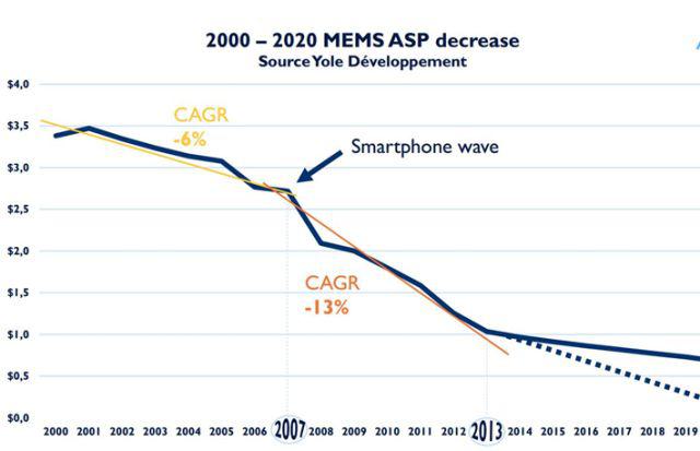 近年來(lái)MEMS價(jià)格趨勢(shì)
