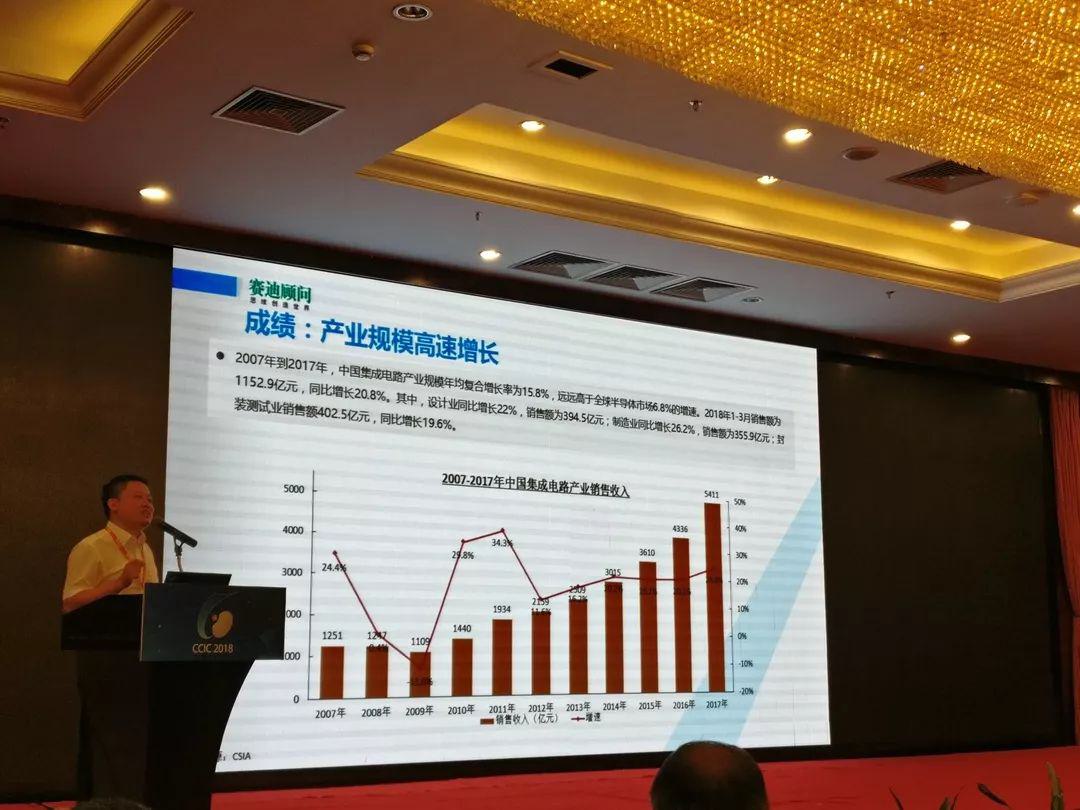 單論中國(guó),2007年到2017年,中國(guó)集成電路產(chǎn)業(yè)年均復(fù)合增長(zhǎng)率為15.8%,遠(yuǎn)遠(yuǎn)高于全球半導(dǎo)體市場(chǎng)的6.8%的增速。2018年1-3月銷售額為1152.9億元,同比增長(zhǎng)20.8%。其中,設(shè)計(jì)業(yè)同比增長(zhǎng)22%,銷售額為394.5億元;制造業(yè)同比增長(zhǎng)26.2%,銷售額為355.9億美元;封裝測(cè)試業(yè)銷售額為402.5億元,同比增長(zhǎng)19.6%。