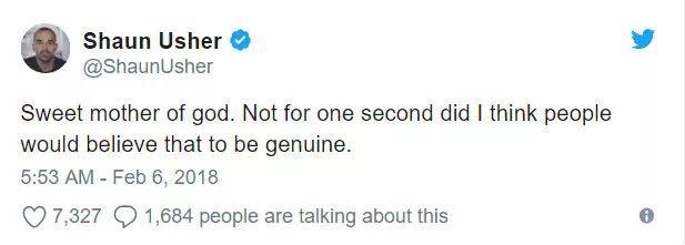 不過推特ID為“Shaun Usher”的老哥今年2月份承認了這張調(diào)侃特朗普的圖片屬于PS,在廣泛流傳的震驚之余,發(fā)了一條推文。