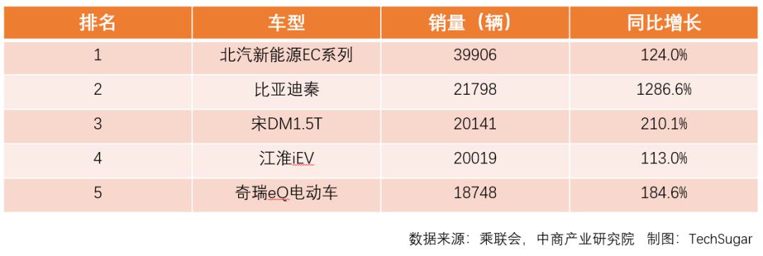 2018年1-6月中國新能源汽車銷量前五車型
