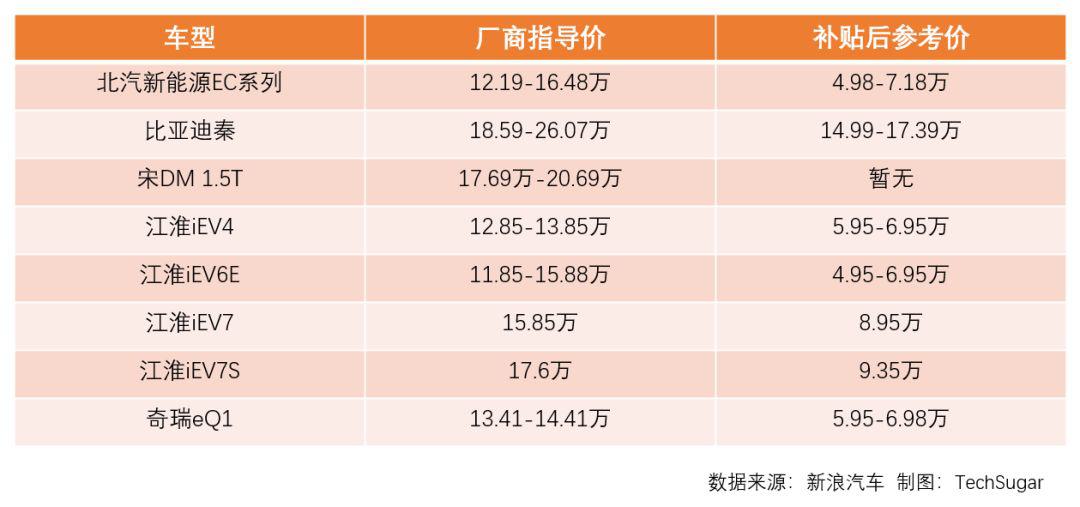 中國新能源汽車熱銷車型價格參考