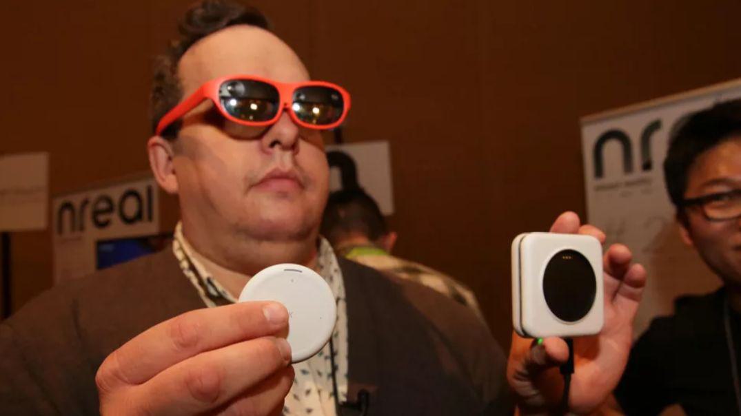 Magic Leap的混合現(xiàn)實(shí)(MR)眼鏡,使用了眼鏡和處理器分開的方法。