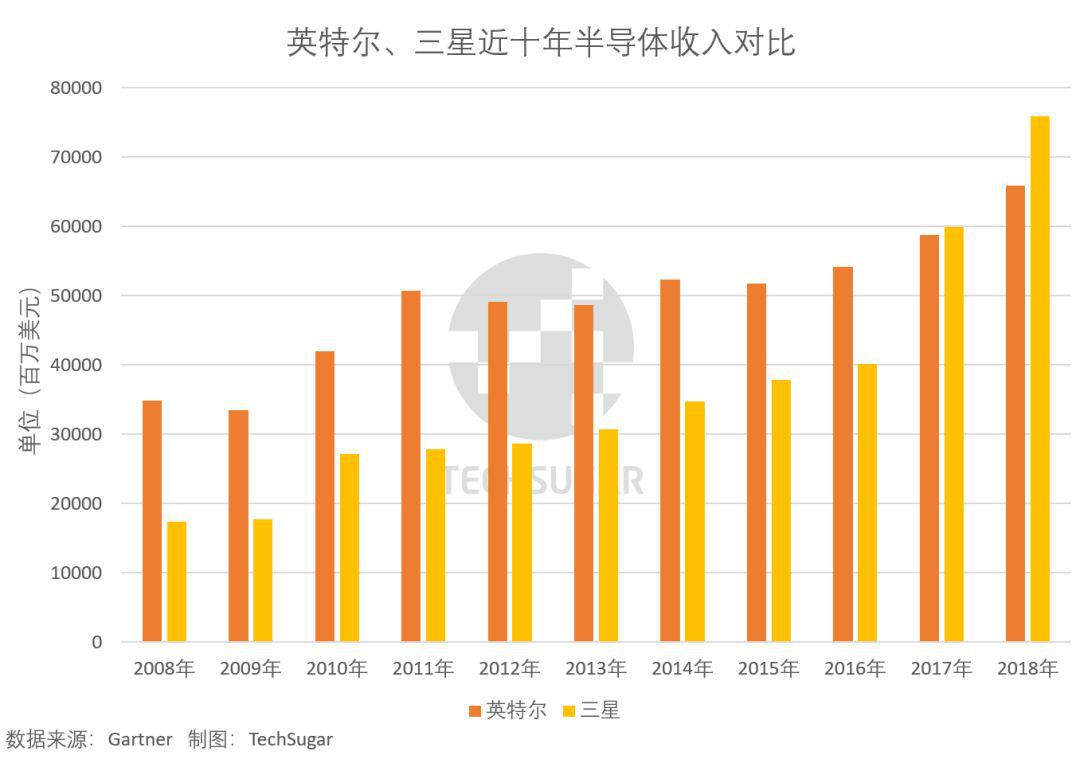 2018年TOP10榜單的十年前剛好是2008年金融危機,上半年行業(yè)銷售情況還屬于良好,從當年第三季度開始疲軟,第四季度迅速惡化,導致增長為負數(shù)。英特爾憑借強勁的筆記本電腦業(yè)務獲得很高的市場份額。三星收入下降了15%,主要產品線DRAM和NAND閃存在2008年市場供應過剩,導致價格大幅下跌。