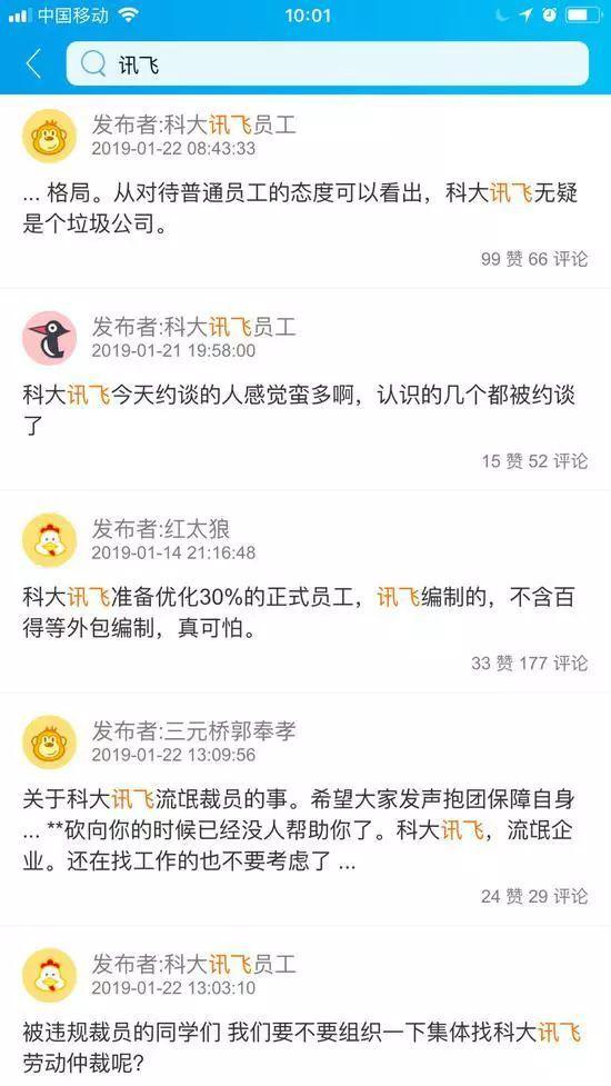 前不久,在匿名社交平臺上,有多個賬號發(fā)布消息稱,科大訊飛優(yōu)化裁員的消息。有“科大訊飛員工”名義的發(fā)布者稱,公司已約談多名員工。