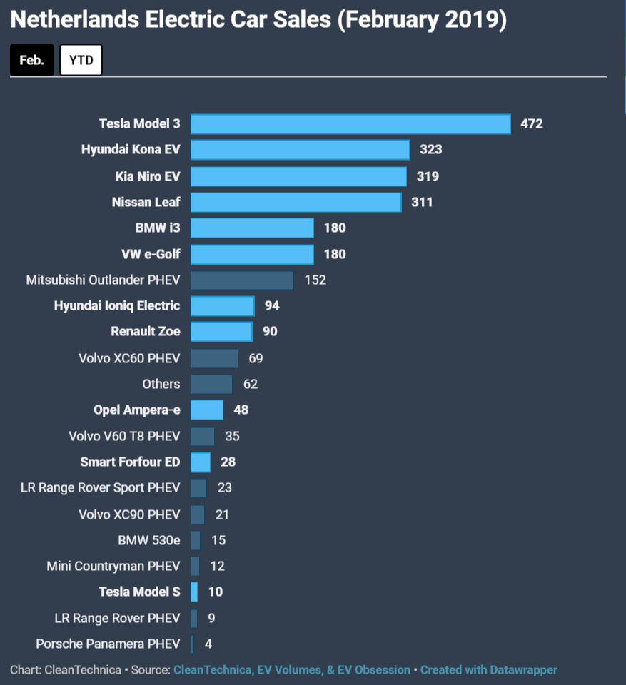 從外媒2月份的一組數(shù)據(jù)來看,特斯拉Model 3已經(jīng)是荷蘭最暢銷的一款車型,如下。