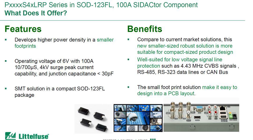 在2019慕尼黑上海電子展上,Littelfuse還發(fā)布了一款針對低壓電器輸入輸出接口保護的低壓大電流晶閘管PxxxxS4xLRP系列SIDACtor®系列產(chǎn)品。據(jù)Littelfuse全球技術(shù)營銷經(jīng)理杜志德介紹,與目前市場解決方案相比,該器件具有體積小、耐受浪涌電流大、低工作電壓、寄生電容小等特性。