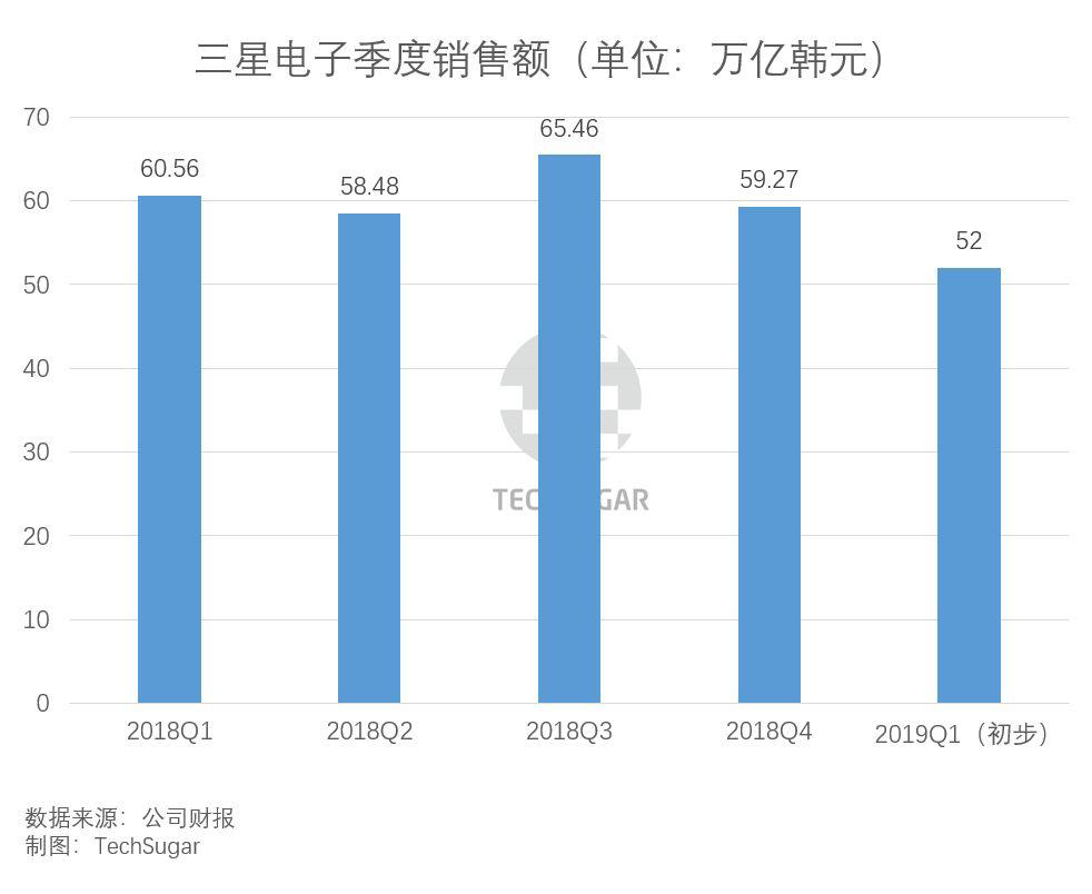 財(cái)報(bào)顯示,三星電子2019年第一季度的銷(xiāo)售額為52萬(wàn)億韓元(約合3073億人民幣),同比下降14.13%、環(huán)比下降9.9%。其營(yíng)業(yè)利潤(rùn)為6.2萬(wàn)億韓元(約合366億人民幣),同比下降60.36%、環(huán)比下降38.5%。