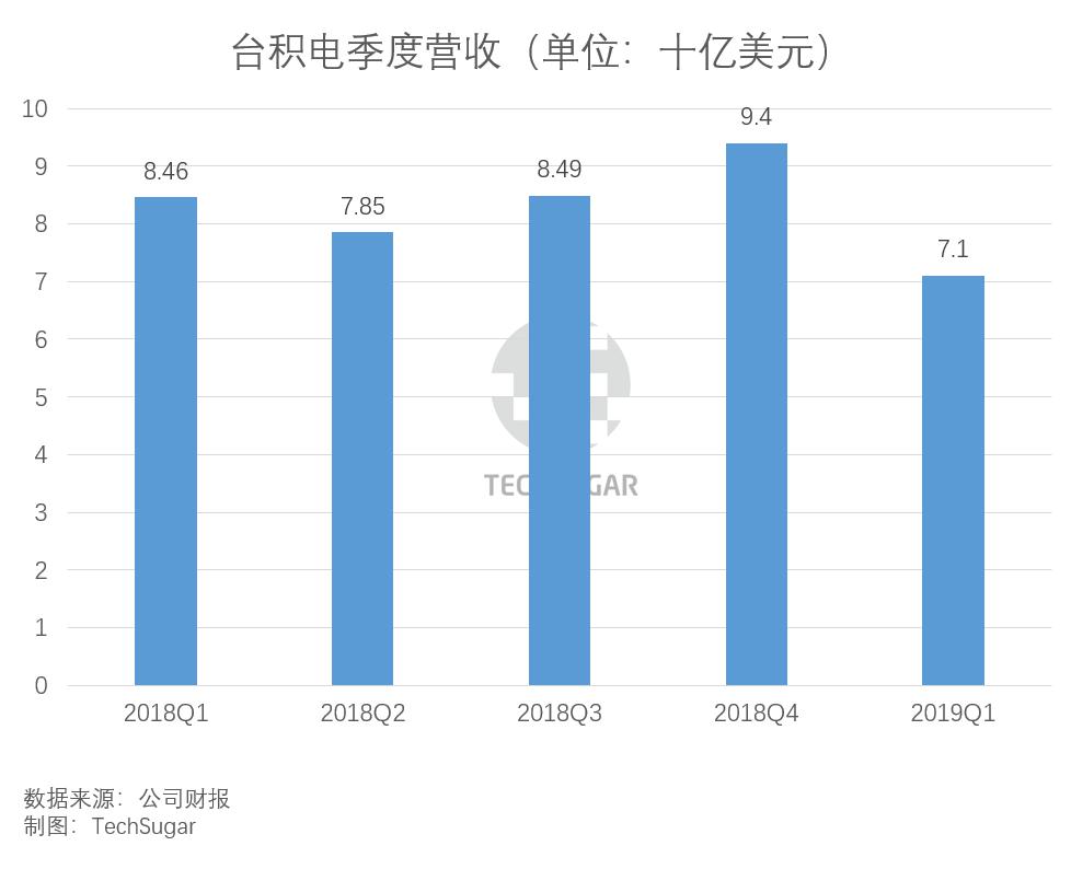 臺(tái)積電2019年第一季度營(yíng)收為2187.04億新臺(tái)幣(約為71億美元),去年同期為2480.79億新臺(tái)幣(84.6億美元),環(huán)比降24.5%,同比降11.8%。主要原因是全球整體經(jīng)濟(jì)形勢(shì)抑制了終端市場(chǎng)需求,客戶庫(kù)存調(diào)整,高端智能手機(jī)季節(jié)性下降以及光刻膠缺陷材料事件。其中,16納米及更先進(jìn)的技術(shù),占整個(gè)晶圓收入的42%;7納米芯片的出貨量占硅片總收入的22%,10納米工藝技術(shù)占4%,16納米技術(shù)占16%。