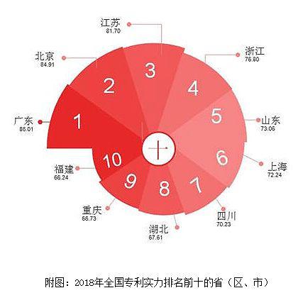 上周國家知識產(chǎn)權(quán)局網(wǎng)站上發(fā)布了《2018年全國專利實力狀況報告》,《報告》顯示,廣東、北京、江蘇、浙江、山東、上海、四川、湖北、重慶、福建位列全國專利綜合實力前十。也許你會說,專利數(shù)量算什么,水分大的狠。
