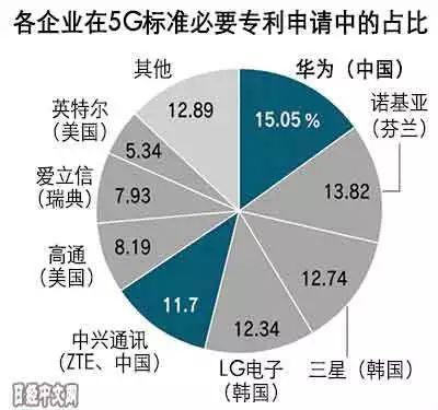 當(dāng)然,在專利方面,本周還有一個圖讓筆者印象深刻。日經(jīng)網(wǎng)發(fā)文,根據(jù)德國專利數(shù)據(jù)庫公司IPlytics的數(shù)據(jù),截至3月,5G通信所需的標(biāo)準(zhǔn)必要專利申請數(shù)量中,中國占有34.02%的比例。其中,5G標(biāo)準(zhǔn)必要專利中申請數(shù)量最多的企業(yè)是華為,占到15.05%。中國企業(yè)中,中興通訊排名第五,中國電信科學(xué)技術(shù)研究院(CATT)排名第九。