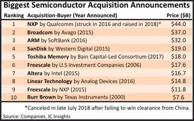 此外,現(xiàn)實的重重枷鎖(如各國保護(hù)國內(nèi)技術(shù)、全球貿(mào)易摩擦等)告訴你這種聯(lián)姻將越發(fā)困難。去年8月中旬,IC Insights就發(fā)文稱:“基于芯片企業(yè)合并協(xié)議帶來的高金額成交,將大型企業(yè)合并在一起引致的復(fù)雜性,以及各國為保護(hù)其國內(nèi)供應(yīng)商而進(jìn)行更嚴(yán)格的審查等種種考慮,未來大規(guī)模的半導(dǎo)體并購不太可能發(fā)生?!?