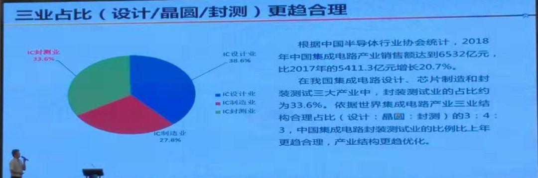 IC封測業(yè)、IC設(shè)計(jì)業(yè)、IC制造業(yè)三業(yè)的比例更趨合理化,在2018年的數(shù)據(jù)中,封裝測試業(yè)的占比約為33.6%。按照世界集成電路產(chǎn)業(yè)三業(yè)結(jié)構(gòu)合理占比(設(shè)計(jì):晶圓:封測)的3:4:3的說法來看,可見中國集成電路產(chǎn)業(yè)結(jié)構(gòu)更趨優(yōu)化。