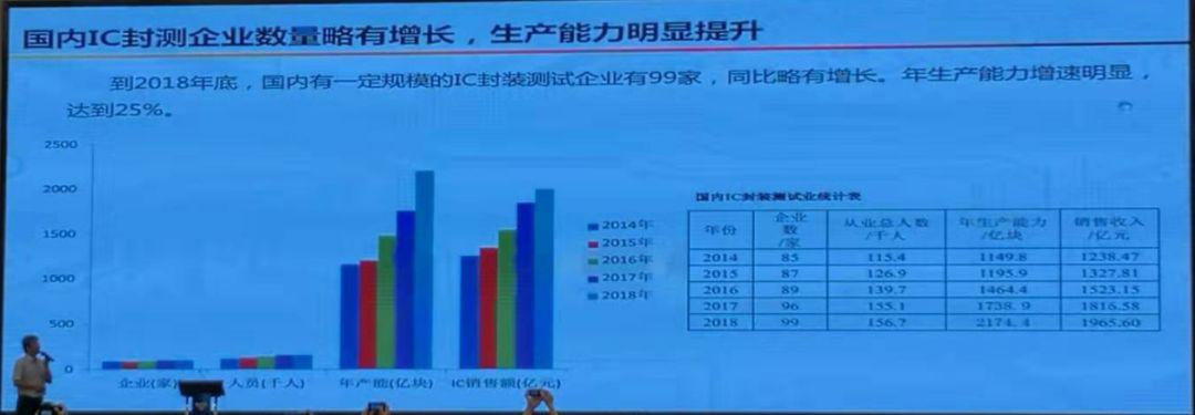 此外,劉岱表示,到2018年底,國內(nèi)有一定規(guī)模的IC封裝測試企業(yè)有99家,同比略有增長。年生產(chǎn)能力增速明顯,達(dá)到25%。