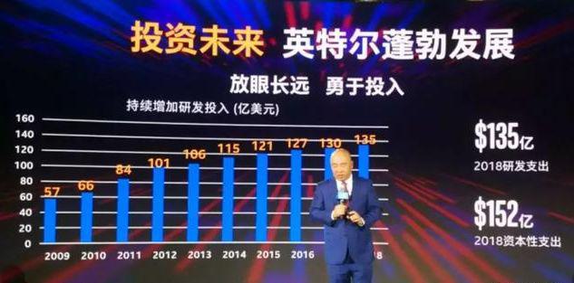 在解析會上,英特爾并沒有引用這句話,只是說:“英特爾是一家垂直集成的IDM廠商,可以說具備六大技術(shù)優(yōu)勢當(dāng)中的全部領(lǐng)域的專門技術(shù)細節(jié)。這也給英特爾提供了無與倫比的優(yōu)勢,從晶體管再到整體系統(tǒng)層面的集成,英特爾可以說能夠提供全面的解決方案?!贝嗽挸鲎杂⑻貭柟炯瘓F副總裁兼封裝測試技術(shù)開發(fā)部門總經(jīng)理Babak Sabi之口。但凡英特爾高層有一個會造“名言”的,那鐵定網(wǎng)紅,奈何都沉迷技術(shù),為此研發(fā)投入高的驚人,如下圖。
