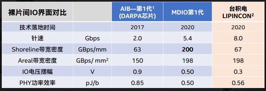 在分析裸片間IO界面相關(guān)參數(shù)時,Ravi Mahajan拿出了一張與臺積電對比的表格。2014年推出了AIB高級互連走線。每平方毫米Shoreline帶寬密度可以達到130,Areal帶寬密度可以達到150。同時針腳速度會達到2.0Gbps,物理層的能耗效率是0.85。臺積電LIPINCON2的針腳速度可以達到8.0,但是它的Shoreline帶寬密度和Areal帶寬密度分別是67和198。Ravi Mahajan表示:“英特爾可以在同樣的帶寬密度條件下在功耗上做得更低,這是我們在內(nèi)部測試所得出的結(jié)果,也是英特爾MDIO的第一代產(chǎn)品?!?