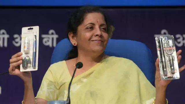 印度財政部長西塔拉曼在發(fā)布會上向媒體展示電子煙產(chǎn)品