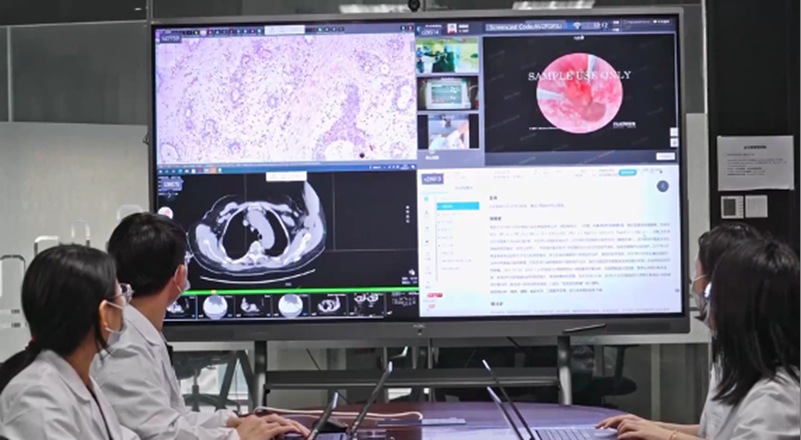 同時,遠(yuǎn)程醫(yī)學(xué)的發(fā)展也讓醫(yī)院迫切需要打造一套能高清呈現(xiàn)視頻畫面、清晰還原人聲、快速傳遞和共享多媒體內(nèi)容的智能化多媒體會議系統(tǒng),新華三集團(tuán)8K云屏不僅能助力醫(yī)院打造簡單、易用的院內(nèi)診療協(xié)作平臺,進(jìn)行快速會議、遠(yuǎn)程診療、科室呼叫等功能,還讓病理閱片和示教等工作變得高清高效。南方醫(yī)科大學(xué)南方醫(yī)院基于新華三8K云屏推動了院內(nèi)跨科室協(xié)作、遠(yuǎn)程診療、以及病理業(yè)務(wù)模式的再造,提高醫(yī)院病理綜合診療能力,利用優(yōu)質(zhì)病理醫(yī)療資源為更多患者提供服務(wù)。