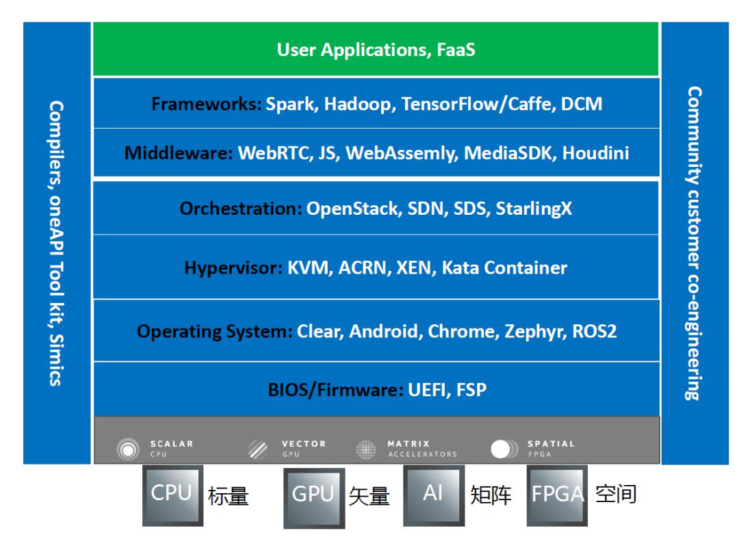英特爾亞太研發(fā)中心總經(jīng)理盧炬也表示,我們正在進入一個以數(shù)據(jù)為中心、計算多元化的時代,計算架構(gòu)在從CPU向xPU擴展。因為不再是單一的CPU架構(gòu),就需要工程師把不同的計算架構(gòu),與不同應(yīng)用場景的工作負載整合到一起,軟硬結(jié)合以發(fā)揮系統(tǒng)配置在具體應(yīng)用場景的最佳性能,最終實現(xiàn)系統(tǒng)的設(shè)計目標,這其中“軟件起了最關(guān)鍵的橋梁作用”。