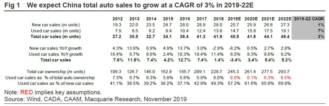 圖1:預(yù)計(jì)中國汽車總銷量在2019-22E年的復(fù)合年增長率為3%