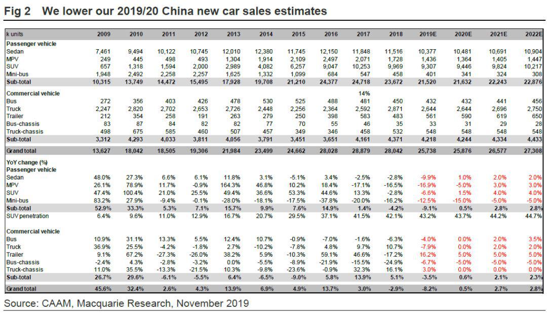 圖2:下調(diào)2019/20年中國新車銷售預(yù)期