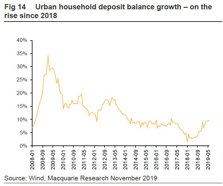 圖14:城鎮(zhèn)居民存款余額增長——自2018年以來持續(xù)增長