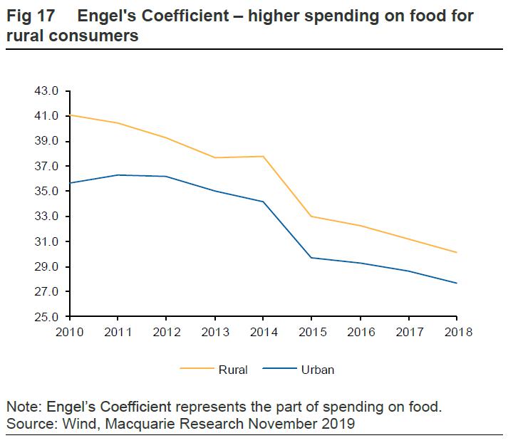 圖17:恩格爾系數(shù)——農(nóng)村消費(fèi)者在食品上的支出增加