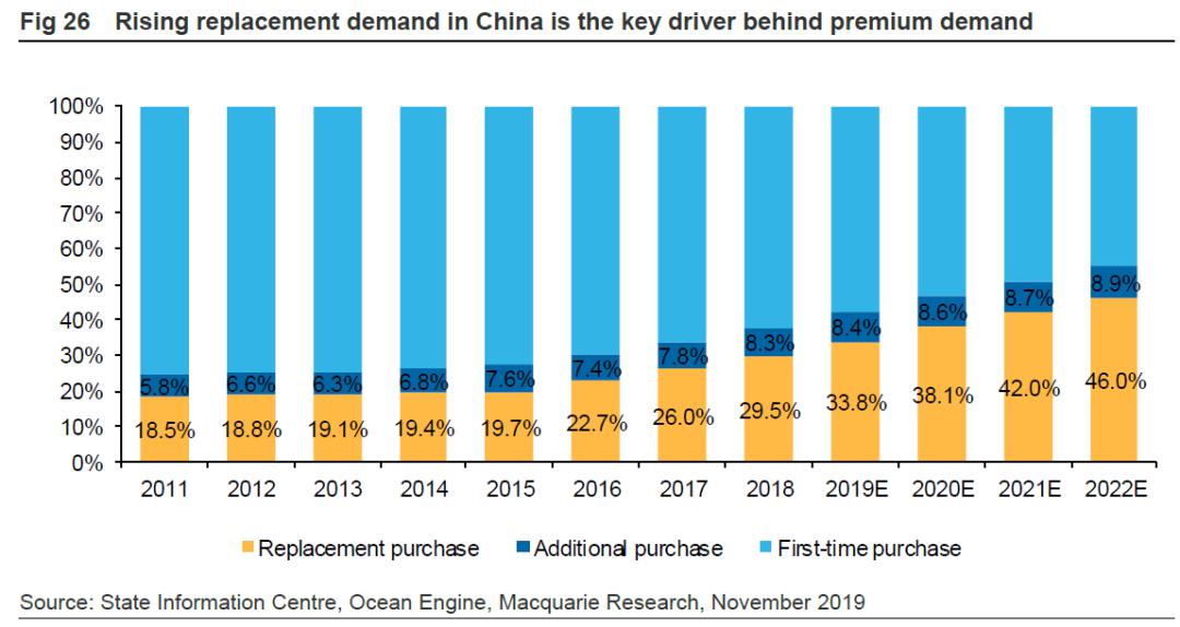 圖26:中國不斷增長的置換需求是溢價(jià)需求背后的關(guān)鍵驅(qū)動(dòng)因素