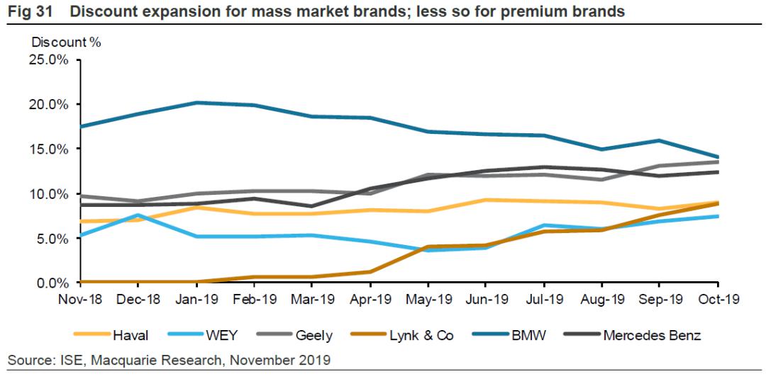 長城汽車最近針對(duì)其主要車型增加了經(jīng)銷商回扣,(是什么使得我們強(qiáng)力賣出,11/13)這就是一個(gè)最近的例子,說明了競(jìng)爭(zhēng)是如何對(duì)慢市造成持續(xù)的定價(jià)壓力。