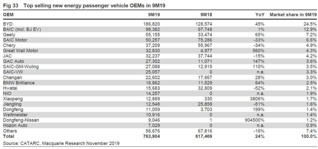 圖33:19年9個(gè)月中最暢銷的新能源乘用車制造商