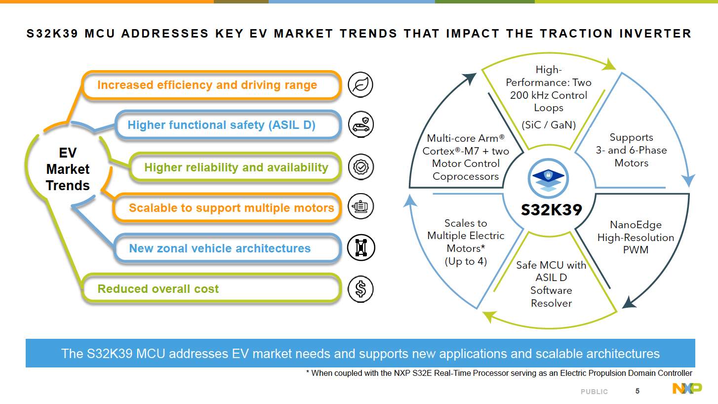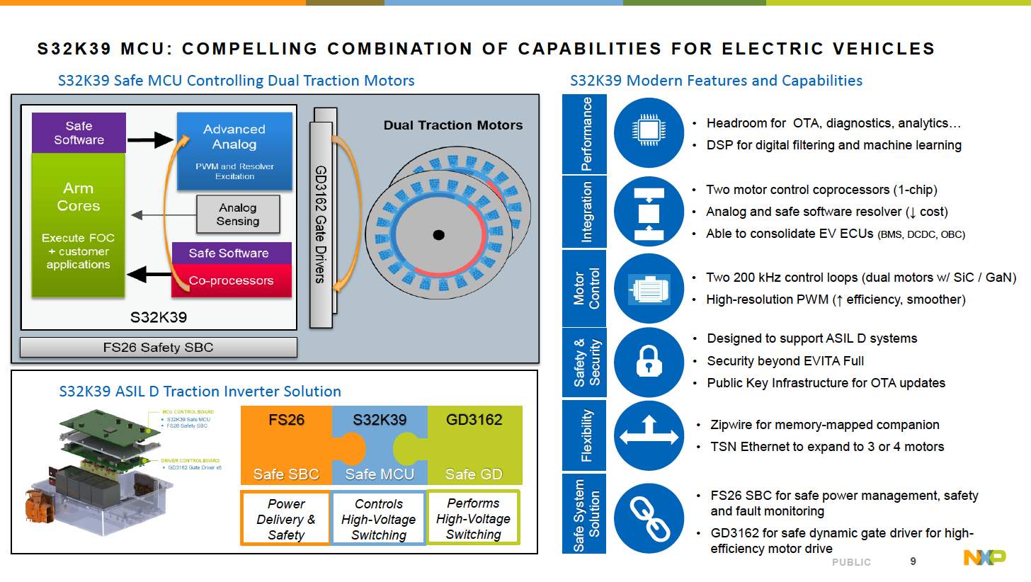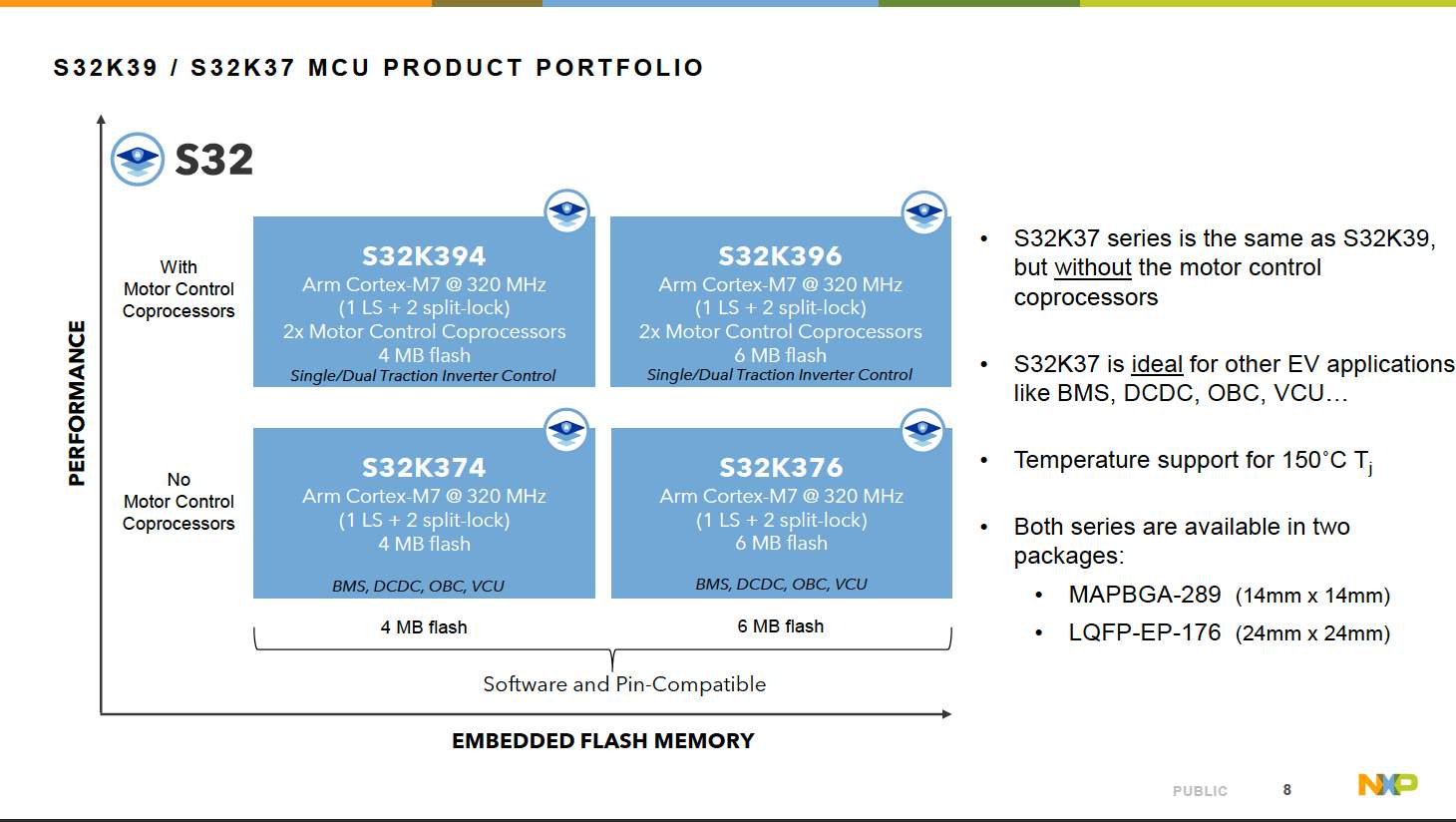 為了滿足當(dāng)下和未來的主驅(qū)逆變器的設(shè)計要求,NXP在近日的慕尼黑電子展上推出了最新的S32K39系列MCU。S32K系列推出已有一年多的時間,原先是針對一些通用型的電機(jī)控制,但最新的K39系列則是更多針對牽引電機(jī)的控制。