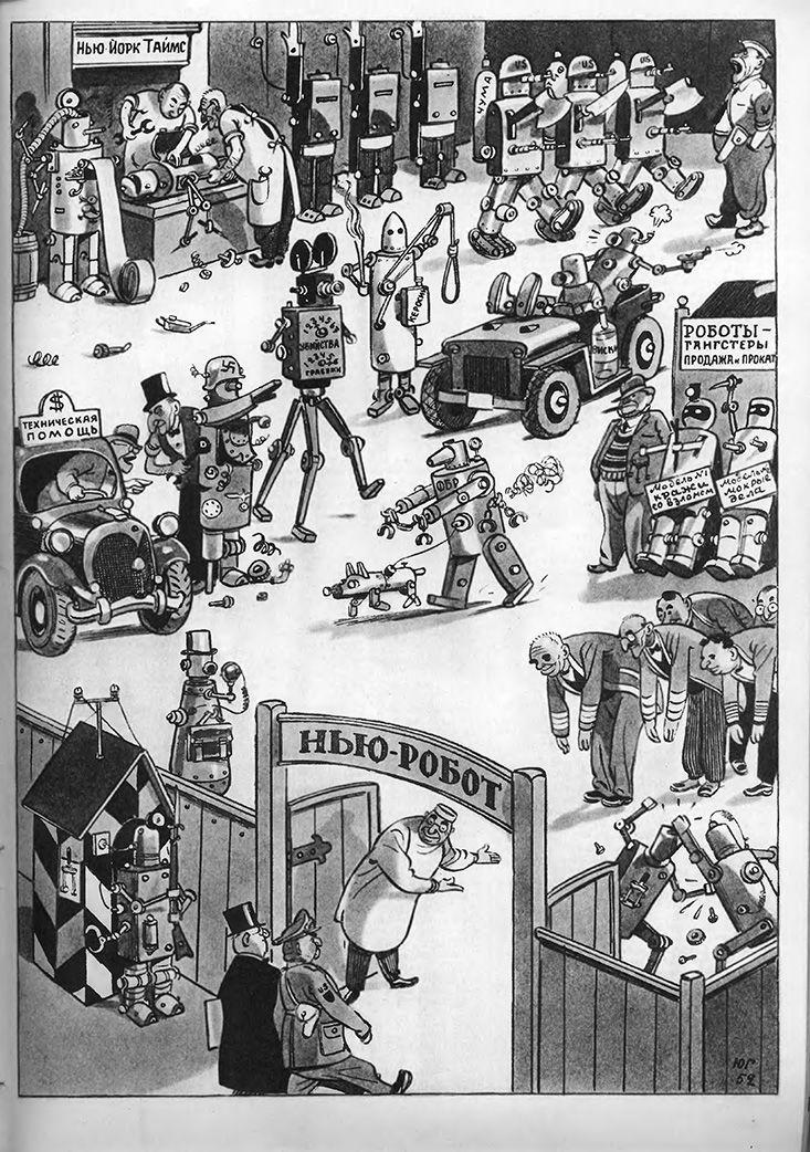 1950年1月,《時(shí)代》雜志的封面出現(xiàn)一句話“人類可以建造超人嗎?”瞬間引來了蘇聯(lián)記者們的嘲笑,當(dāng)年5月份,頗具影響力的蘇聯(lián)雜志《文學(xué)報(bào)》的科學(xué)編輯鮑里斯·阿加波夫(Boris Agapov)嘲笑了美國資本家的“美夢”——他們必須用聽話的機(jī)器人來代替階級(jí)意識(shí)敏感的工人,因?yàn)楣と穗A級(jí)不會(huì)為資產(chǎn)階級(jí)而戰(zhàn)。