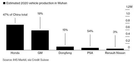 通用、大眾、福特、本田等公司都宣布中國工廠延長假期。其中本田在武漢工作的大約30名日本員工和家人已乘坐日本政府的包機(jī)回國。據(jù)媒體報道,本田武漢的三家合資工廠生產(chǎn)CR-V和思域等車型,年產(chǎn)能總計60萬輛,幾乎占本田在華總產(chǎn)能的一半。