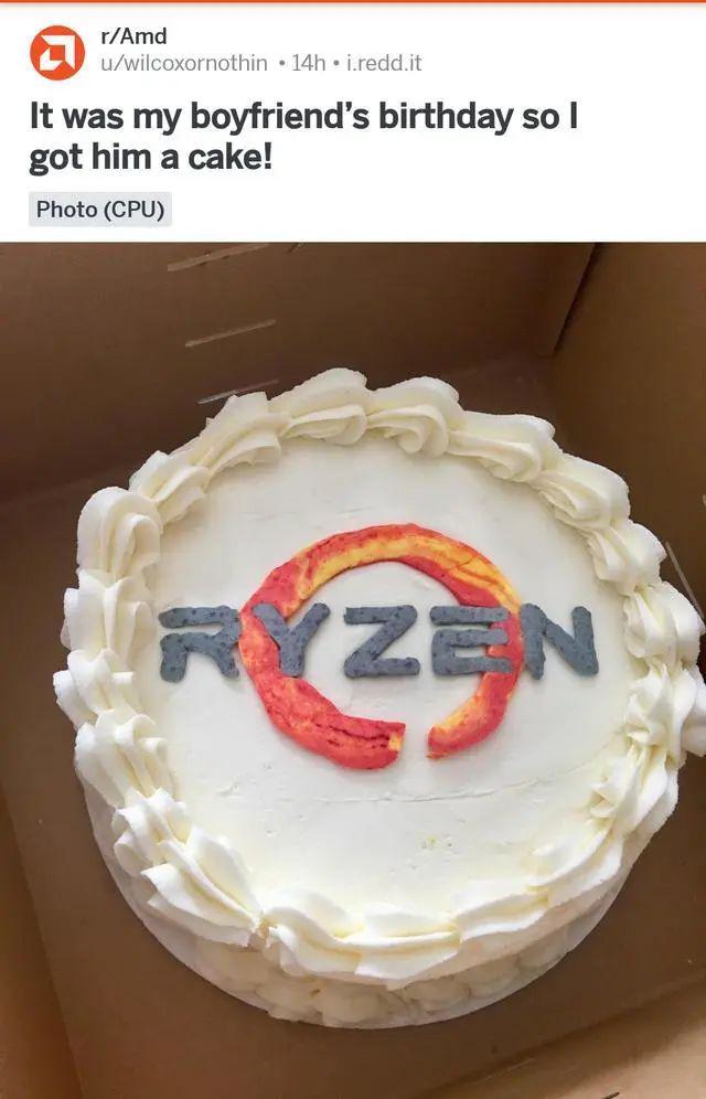 他們時而很感人,一女生給自己的AMD鐵粉男友,送上一份銳龍蛋糕,羨煞圈內單身狗們。這位AMD鐵粉表示,以后結婚定情信物是一臺帶有AMD CPU的組裝電腦,以表火熱之心。