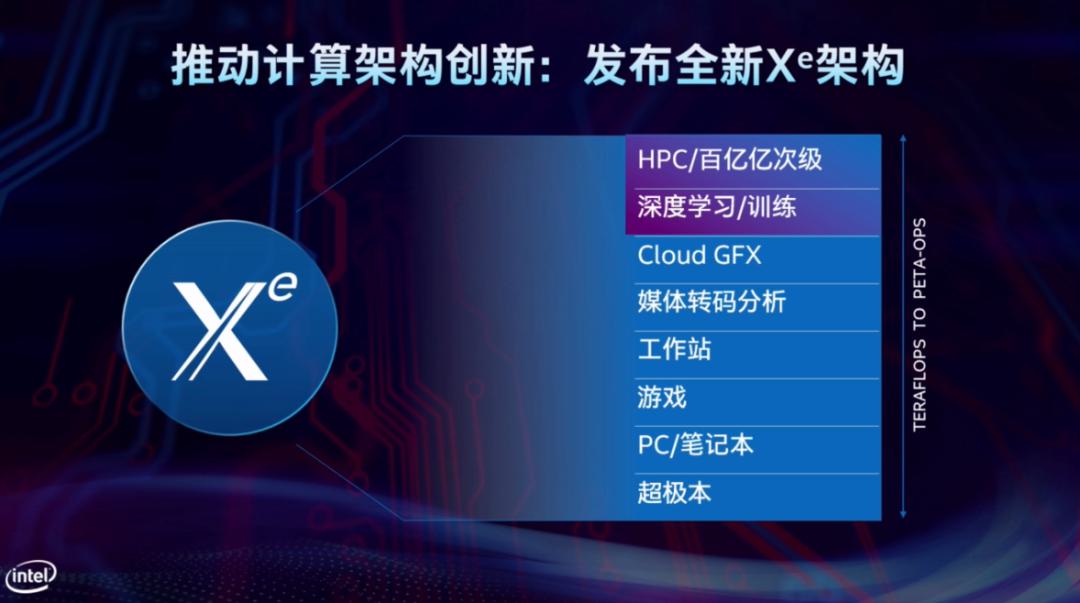值得一提的是,英特爾發(fā)布了全新Xe架構(gòu),這是一個非常靈活、擴(kuò)展性極強(qiáng)的統(tǒng)一架構(gòu),針對性地劃分成多個微架構(gòu)。它可用于幾乎所有計(jì)算、圖形領(lǐng)域,包括百億億次高性能計(jì)算、深度學(xué)習(xí)與訓(xùn)練、云服務(wù)、多媒體編輯、工作站、游戲、輕薄筆記本、便攜設(shè)備等。