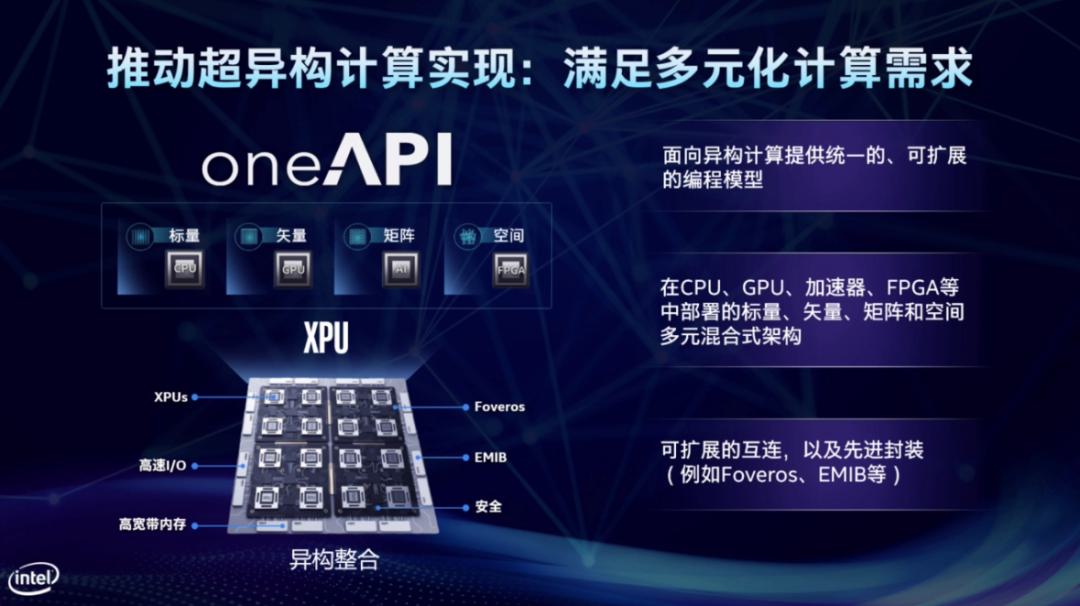 超異構(gòu)計(jì)算更是可以集成不同架構(gòu)、不同制程、3D 封裝、互連和 oneAPI 等技術(shù)創(chuàng)新,為客戶提供更多的靈活性和更快的產(chǎn)品上市時間,全方位推動計(jì)算創(chuàng)新發(fā)展。