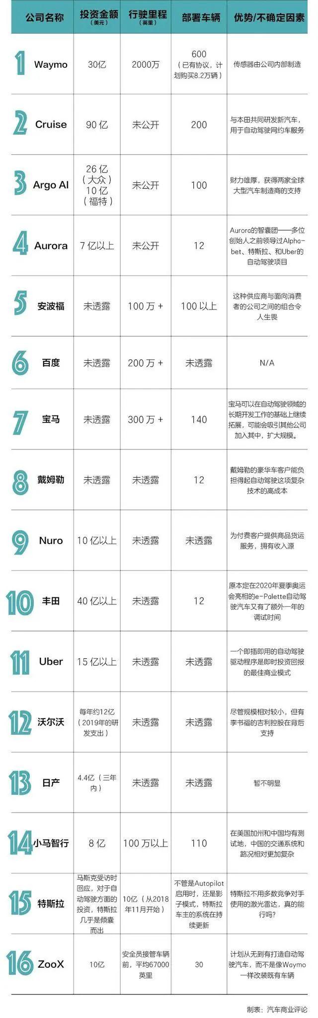 自動(dòng)駕駛汽車(chē)公司如今的發(fā)展