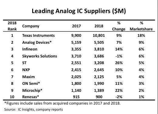 從小小倉(cāng)庫(kù)變模擬巨頭,ADI的轉(zhuǎn)變是不易而又成功的。說到模擬芯片廠商,那就不得不提一提ADI(亞德諾半導(dǎo)體)。據(jù)IC Insights,2017~2018年的全球十大模擬IC供應(yīng)商排行榜中,ADI連續(xù)兩年占據(jù)榜單第二。