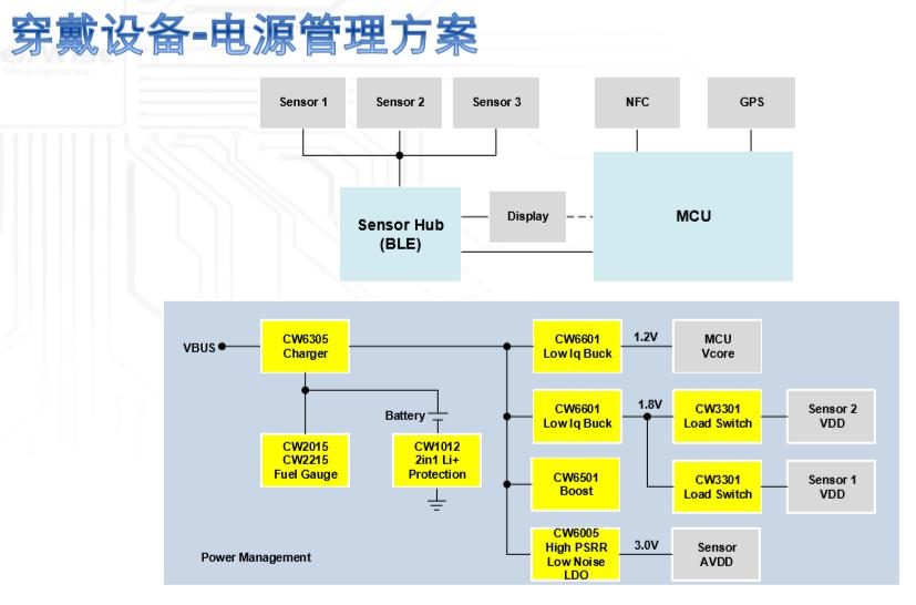 可穿戴用小尺寸電量計(jì)CW2015CTCC采用了專利的 “Fast Cali”電量計(jì)算法,提供快速的電池狀態(tài)和內(nèi)阻計(jì)算,和電池全生命周期內(nèi)的高精度SOC計(jì)算,并針對(duì)TWS應(yīng)用進(jìn)行了優(yōu)化 。帶電流檢測(cè)低功耗電量計(jì)CW2215同樣采用“Fast Cali”電量計(jì)算法,支持電流、外置NTC檢測(cè) ,可提供完整的客戶精度調(diào)試和應(yīng)用支持。穿戴用負(fù)載開(kāi)關(guān)CW3301具有較大的輸入電壓范圍 、較低的導(dǎo)通內(nèi)阻、超低功耗與小封裝尺寸。