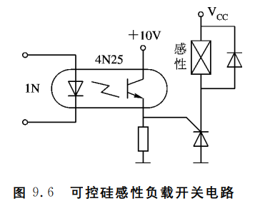 用邏輯電路信號(hào)來驅(qū)動(dòng)可控硅 ,如圖 9.6 所示,由于負(fù)載為感性開關(guān)電路,產(chǎn)生的尖峰噪聲用光電耦合器隔離輸入輸出后,負(fù)載上的噪聲就 不會(huì)反饋到邏輯電路。