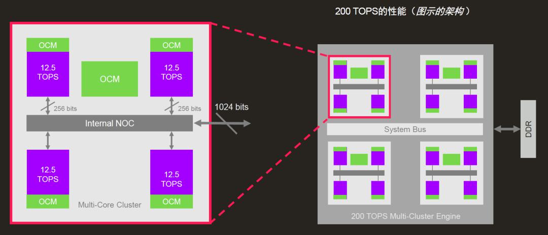 多核集群算力更是成倍增長,4系列支持集群內(nèi)配置 2個、4個、6個或者8個單核,包含8個單核的集群算力即達到100 TOPS,6個集群算力達600 TOPS,可滿足L5級別自動駕駛或數(shù)據(jù)中心等多種計算密集型應(yīng)用場景。