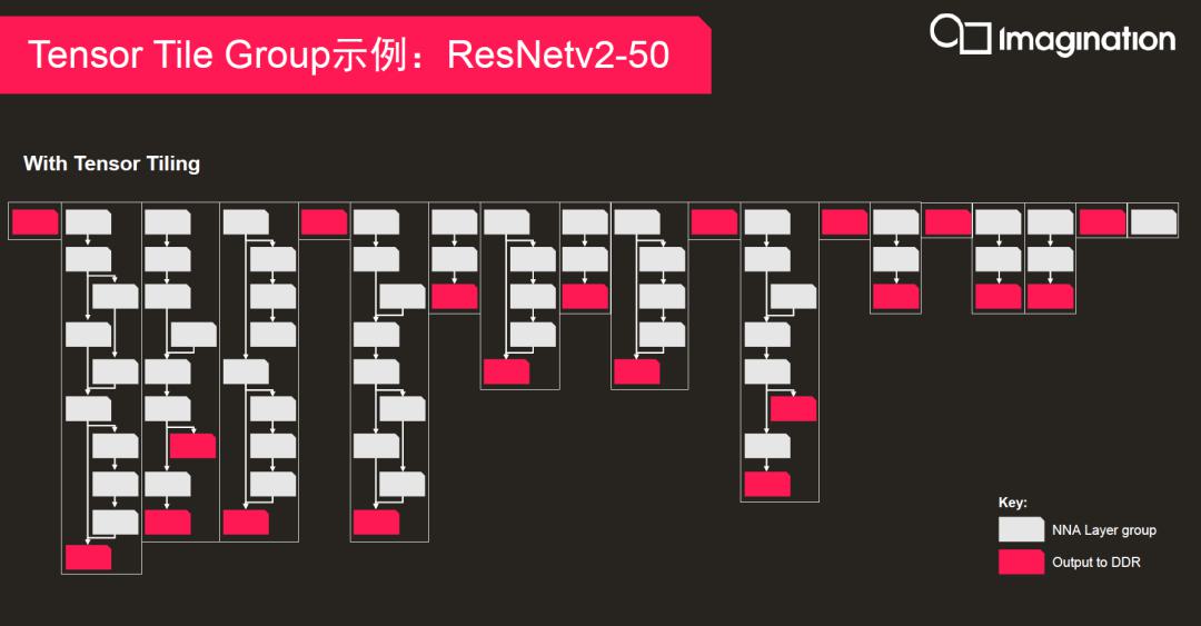 ITT的概念,是在空間維度上對每個張量進行拆分,利用片上存儲加深算子融合,從而減少神經(jīng)網(wǎng)絡(luò)執(zhí)行過程中通過外部存儲交換的中間特征圖,進而降低對內(nèi)存帶寬的需求。根據(jù)Imagination的統(tǒng)計,最大可減少內(nèi)存帶寬需求90%。這在計算大型網(wǎng)絡(luò)時優(yōu)勢十分明顯。
